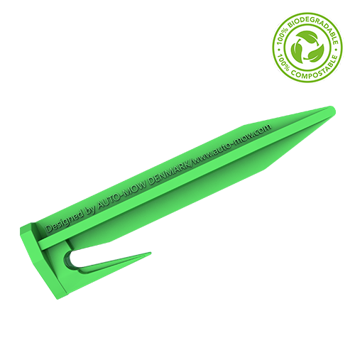 Aceste cuie biodegradabile sunt aprobate de reglementările UE. Se descompun după 1-2 ani și devin compost. Cuiele biodegradabile Auto-Mow sunt aceleași cuie de înaltă calitate ca și cuiele noastre obișnuite din plastic. Studiul arată că 90% dintre toți instalatorii lasă cablul de delimitare în pământ, după ce reinstalează un cablu nou în aceeași grădină. Aceste cuie biodegradabile vor face mult mai ușoară îndepărtarea cablului vechi și vor lăsa o instalație curată, cu doar 1 cablu și 1 set de cuie în pământ. 100 buc